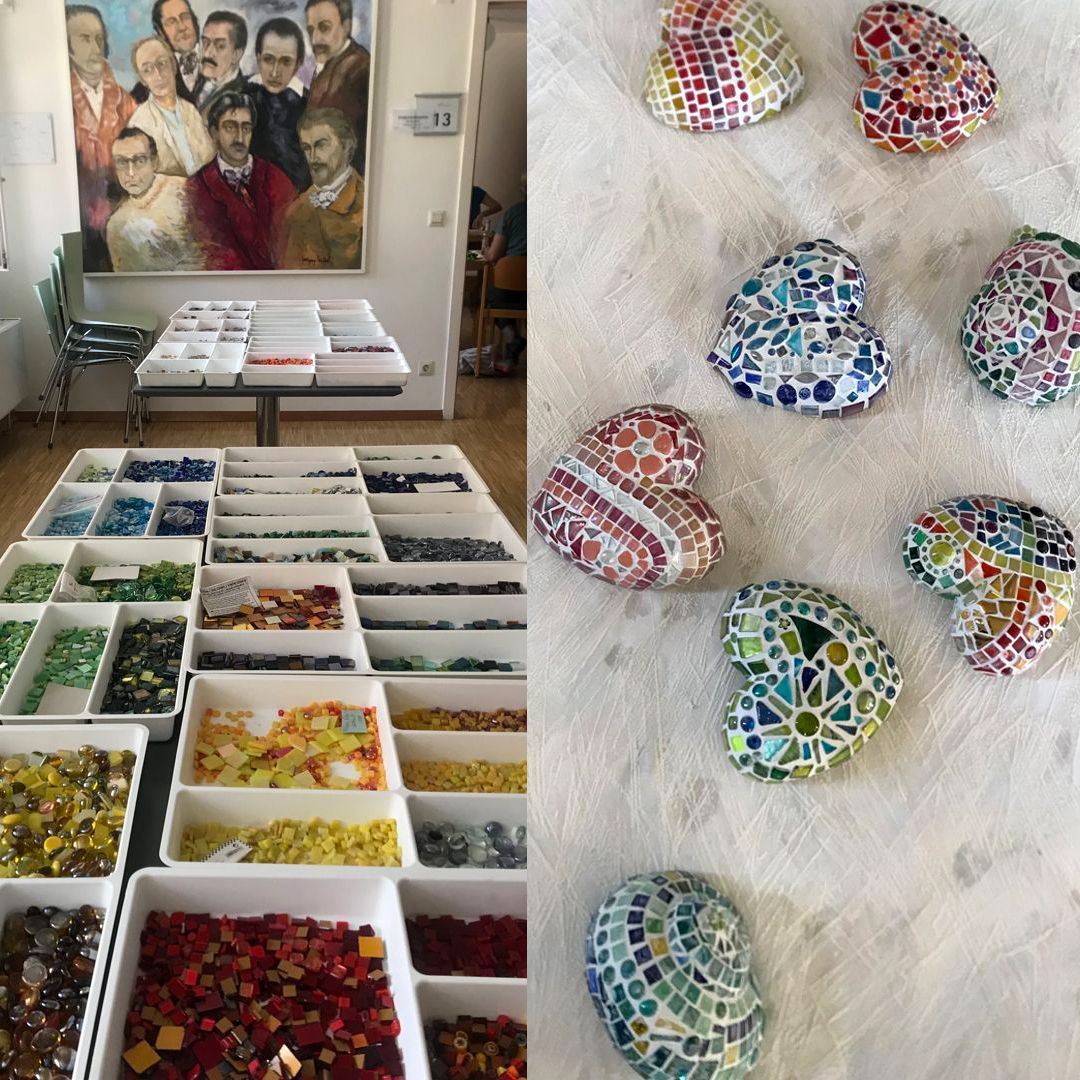 ... oder andere kreative Motive lassen sich mit dieser Technik wunderbar gestalten. Die alte Kunst des Mosaik-Legens hat bis heute nichts von ihrer Faszination verloren, erhält aber mit neuen Elementen ein modernes Gesicht. Die Mosaik-Künstlerin Manuela Landig möchte die Kursteilnehmer am Glück, mit den Händen zu arbeiten, teilhaben lassen. Das entspannt, erdet und macht einfach glücklich. In dem Kurs finden Sie Anregungen und Gestaltungstechniken zum Thema Mosaik, vermittelt mit Lebenslust und Lachen.
